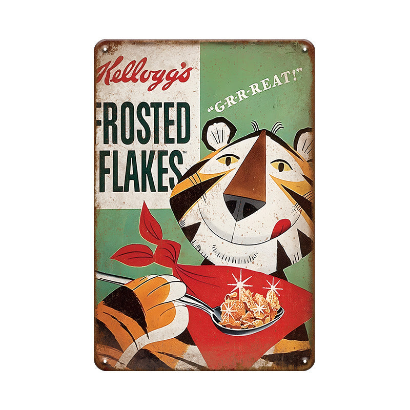ケロッグの人気キャラクター「トニー・ザ・タイガー」が描かれたビンテージ風ブリキ看板です。