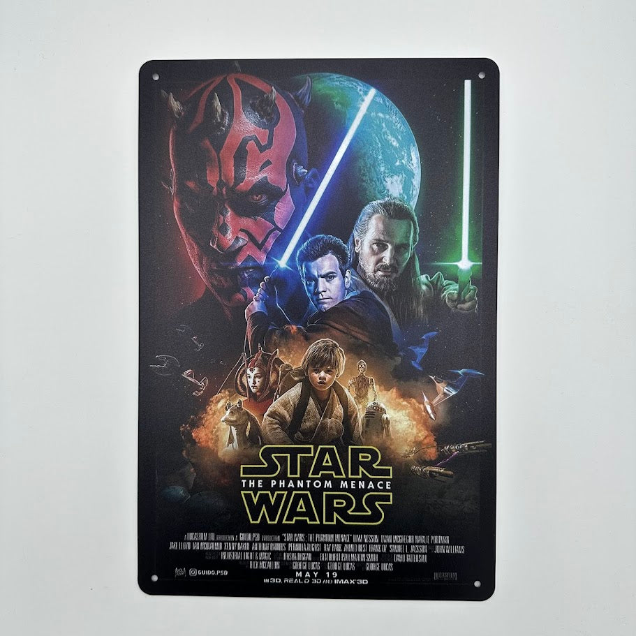 こちらは、「スターウォーズ エピソード1 ファントム・メナス」の映画ポスターをモチーフにしたブリキ看板です。