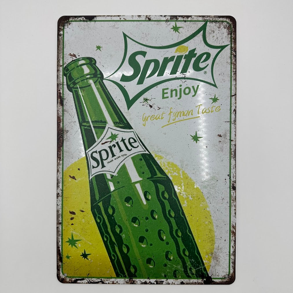 爽やかなレモンライムの象徴「Sprite(スプライト)」のヴィンテージ風ブリキ看板。