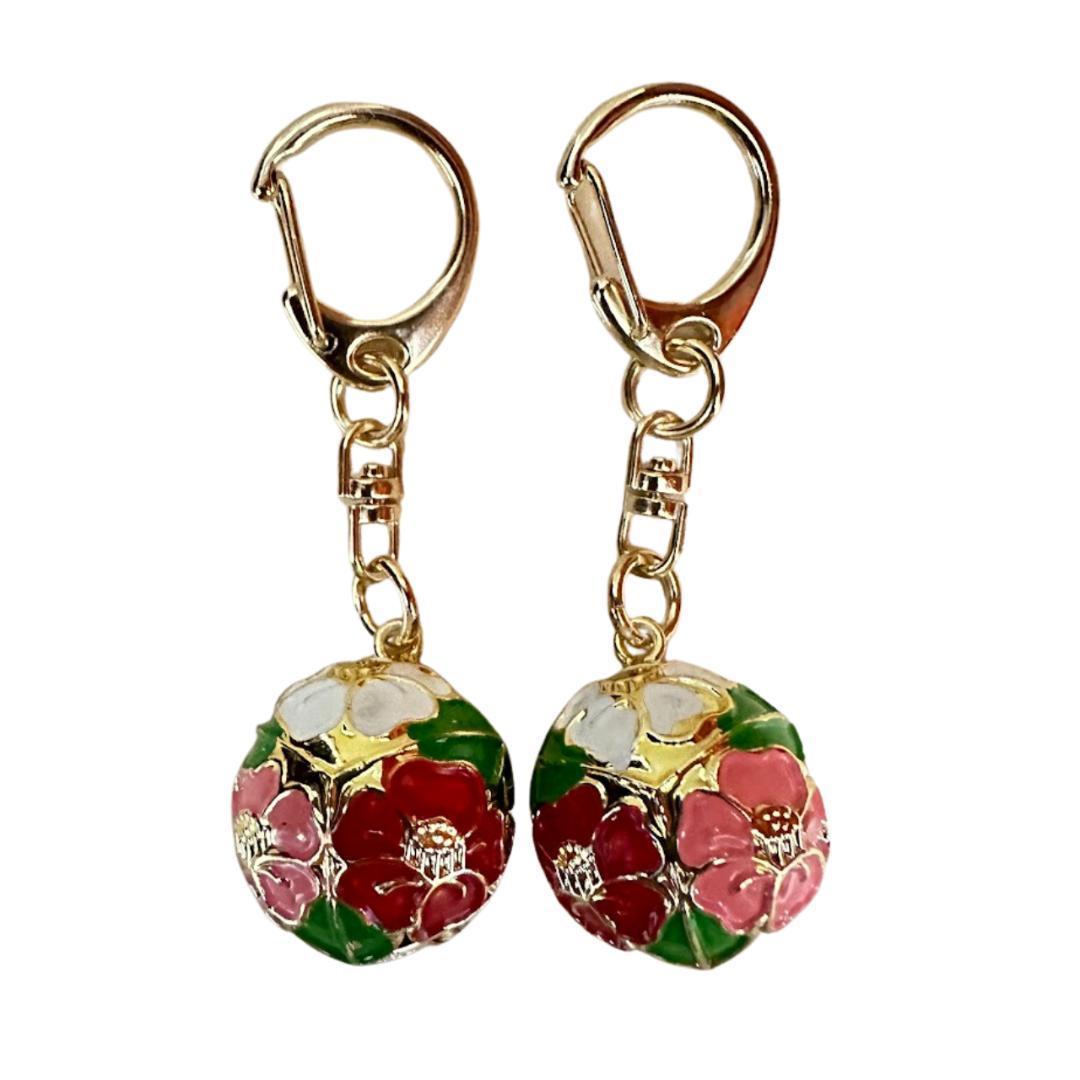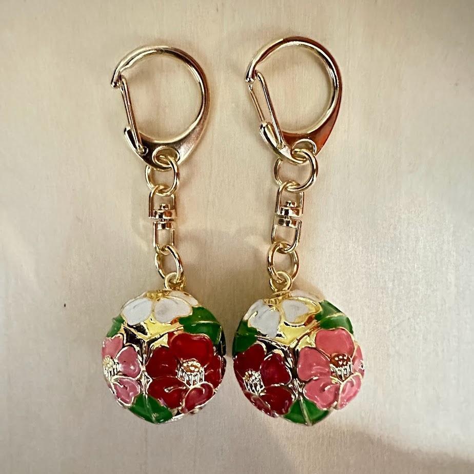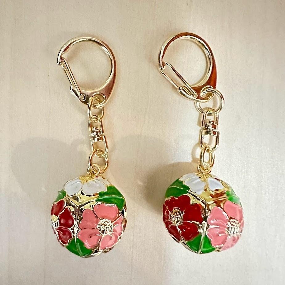 ツバキ 鈴付き キーホルダー 2個×2.5cmセット