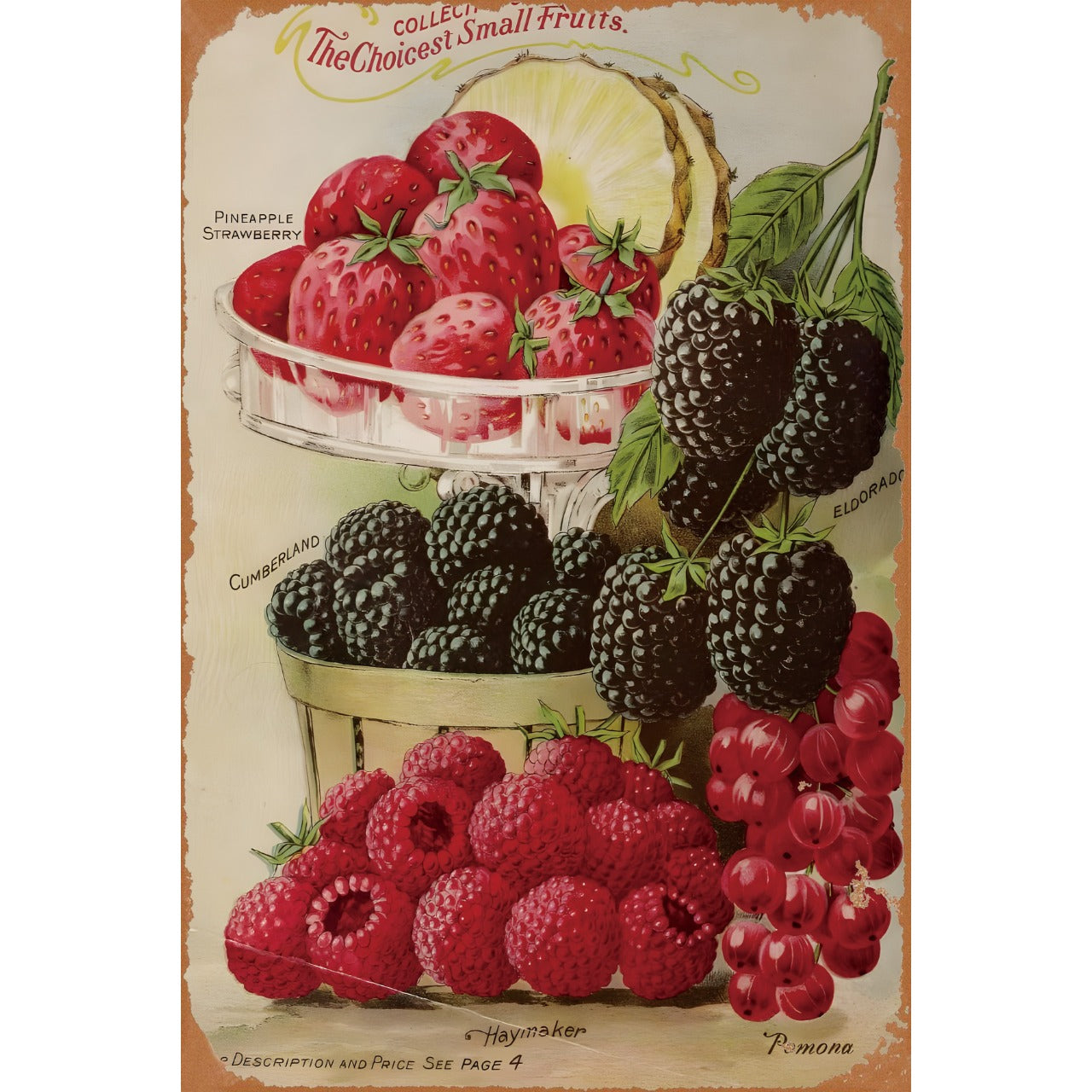 フルーツ ベリー コレクション ストロベリー ラズベリー ブラックベリー ヴィンテージ アート ブリキ看板
