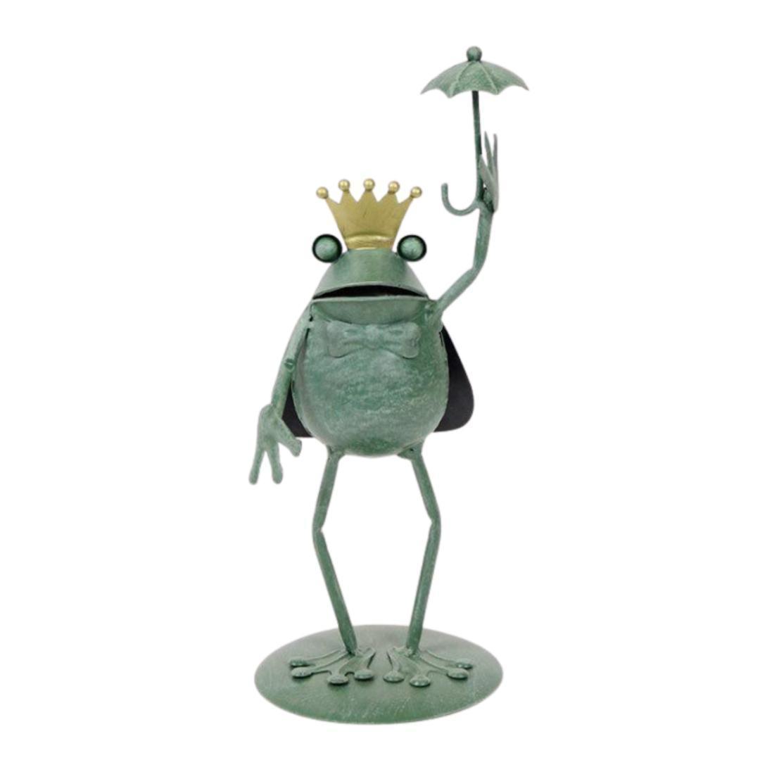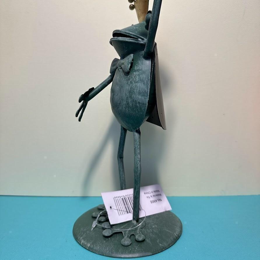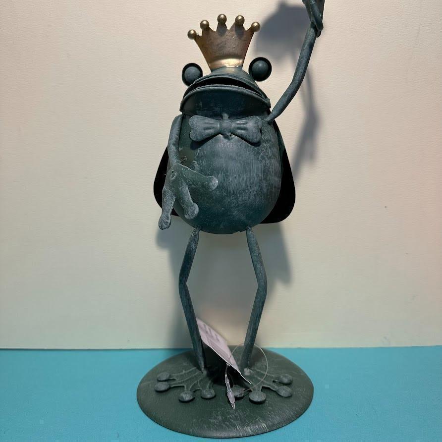 ブリキ製のフロッグキングデコです。 【サイズ】幅約12cm、奥行き約12cm、高さ約31cm 【素材】ブリキ