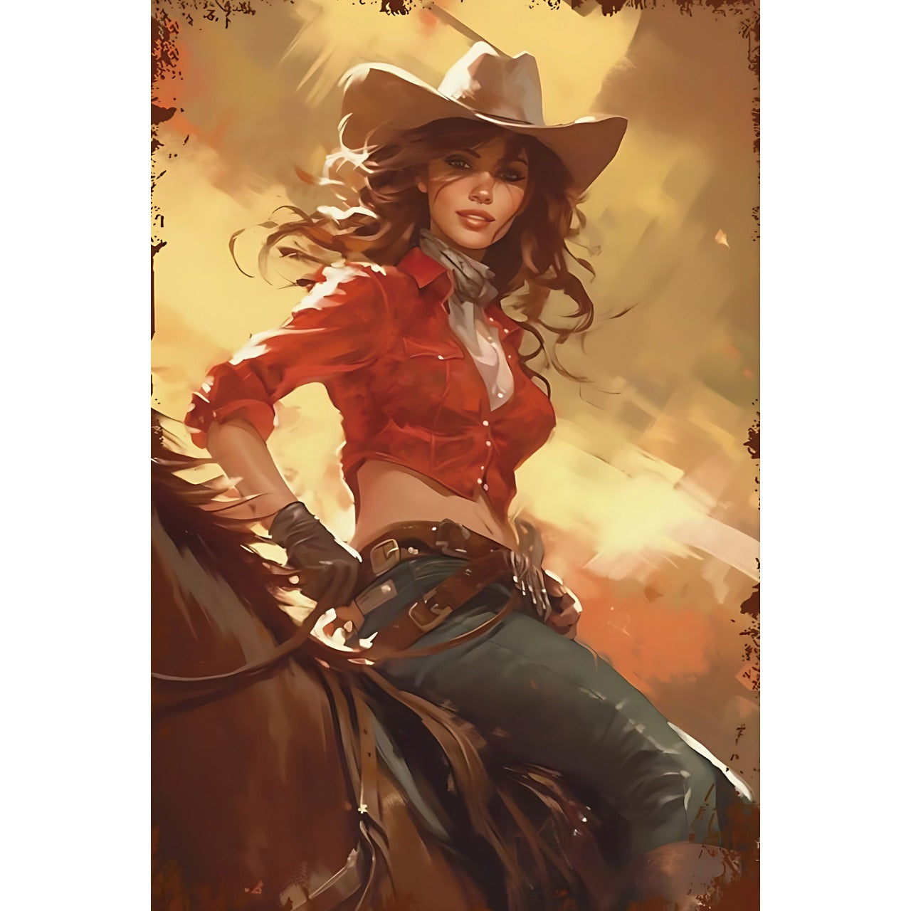 カウボーイハットをかぶった女性が印象的なアートワークです。