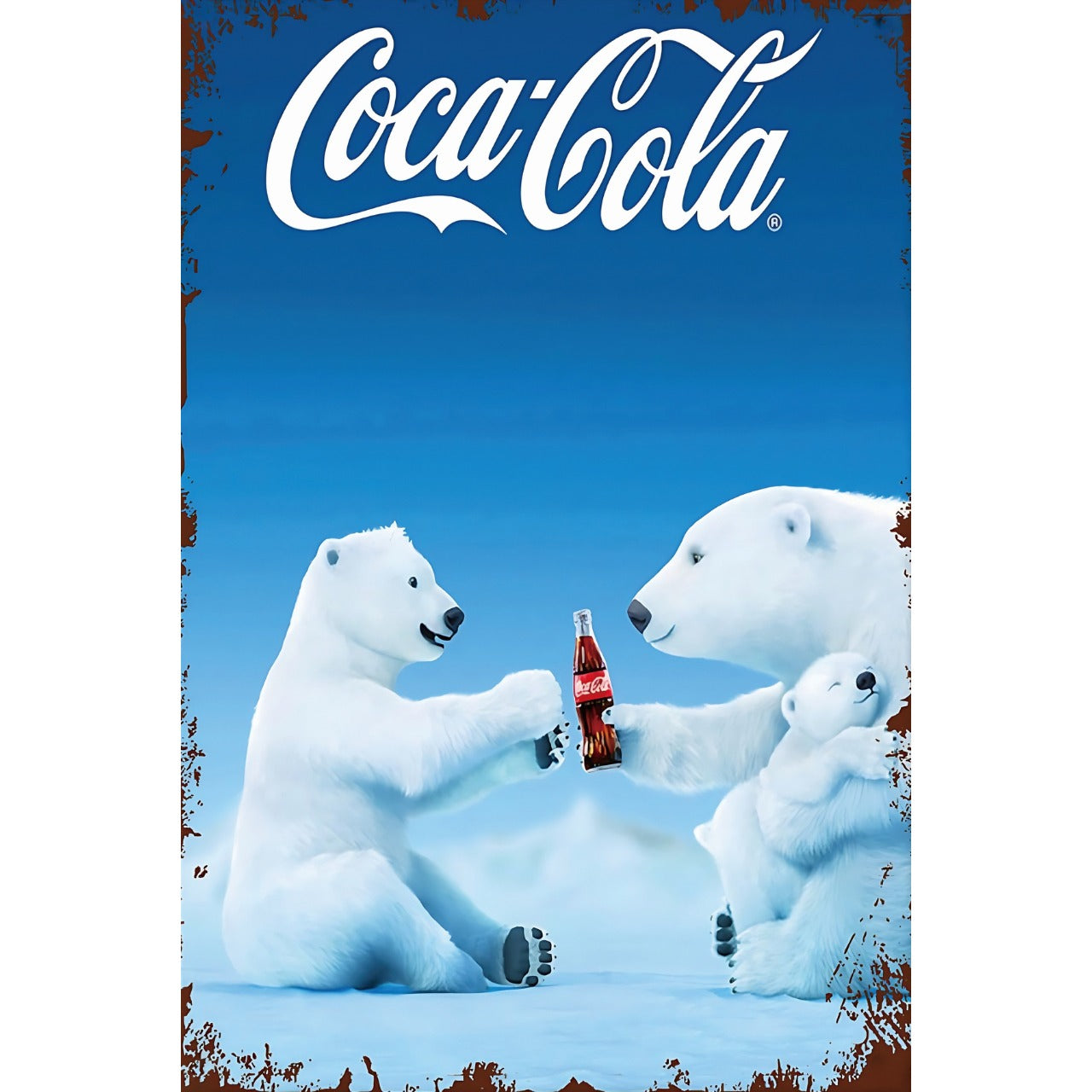 コカコーラの象徴的なホッキョクグマが描かれたレトロなブリキ看板です。