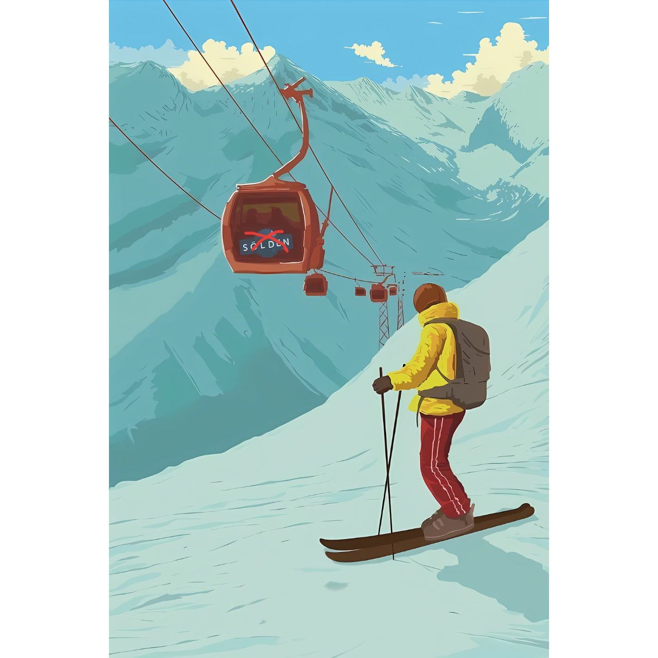 「SÖLDEN」と書かれたゴンドラがアクセントとなり、ヨーロッパのスキーリゾートを思わせるデザイン。