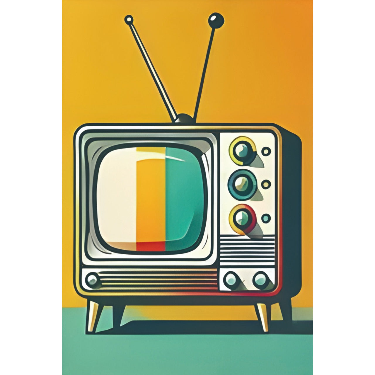 昭和レトロなブラウン管テレビのポップアートデザインのブリキ看板です。
