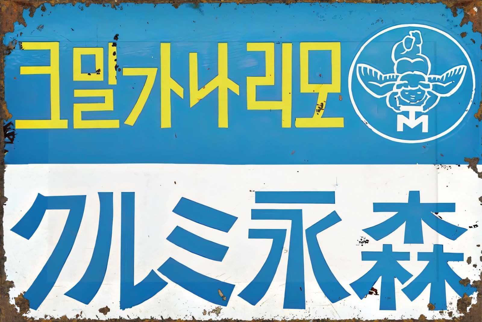上部には韓国語の表記、下部には「クルミ永森」と日本語で描かれており、異国情緒を感じられるデザインになっています。