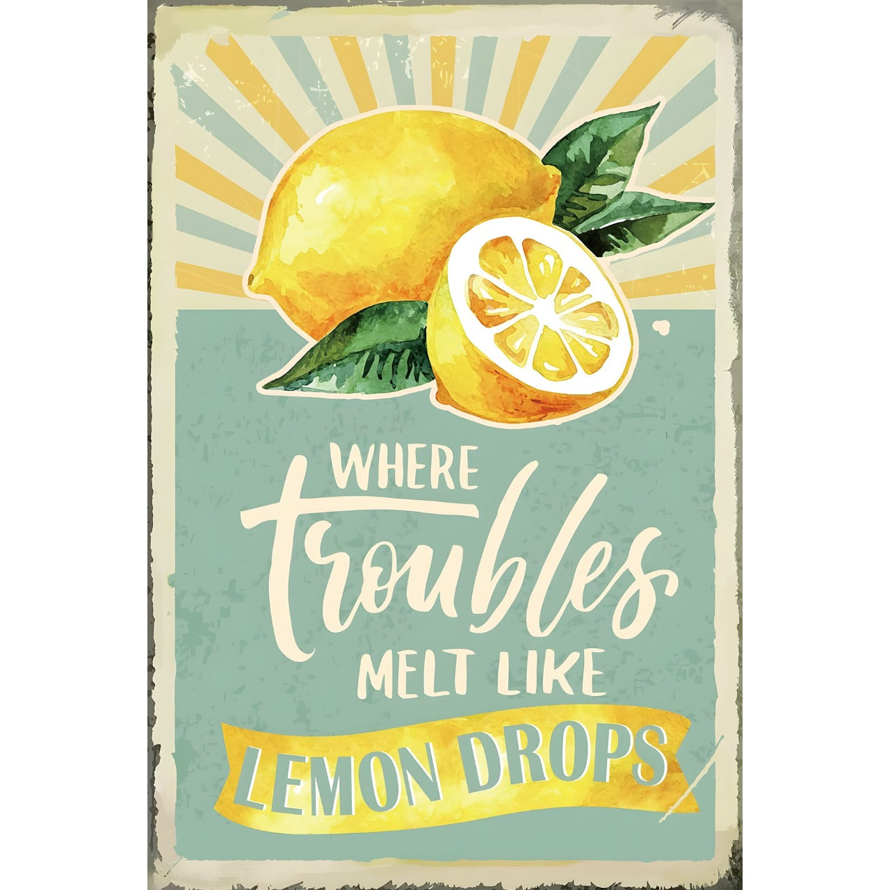 の癒されるメッセージが描かれた、爽やかなデザインのブリキ看板です。
