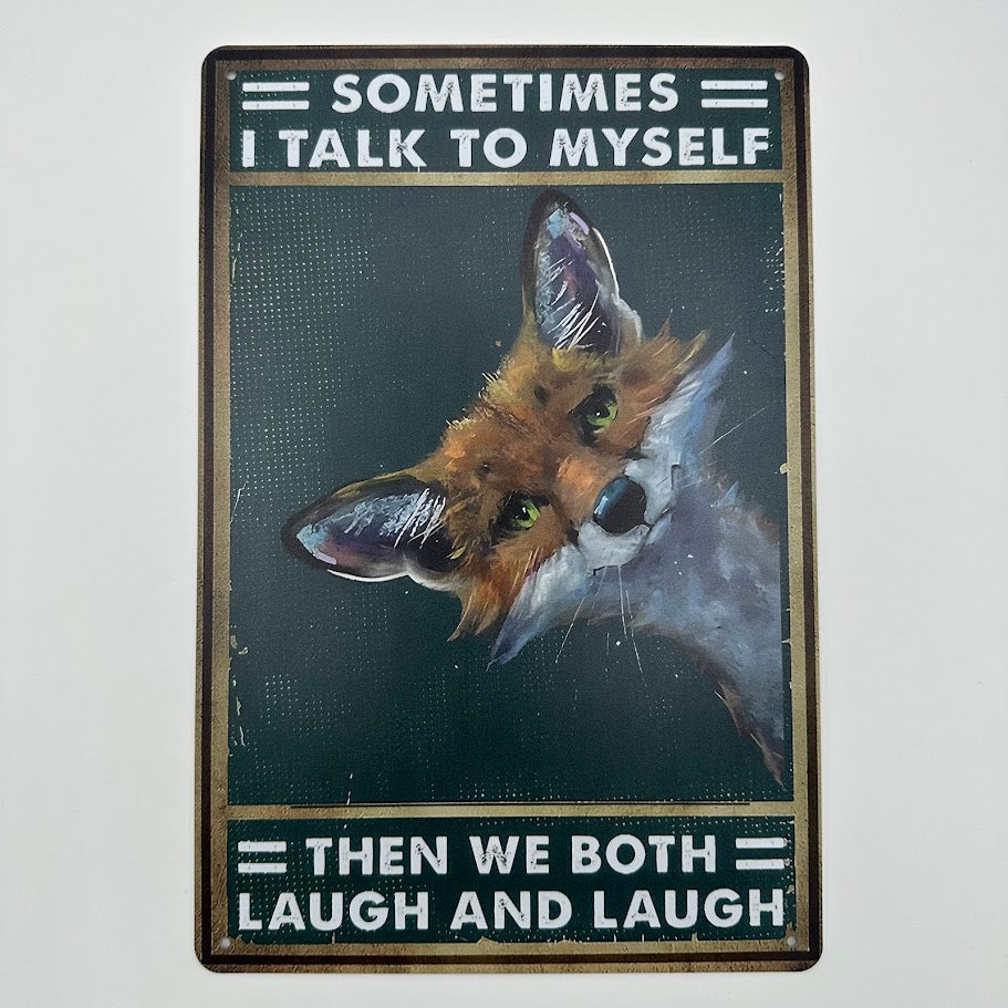 このヴィンテージスタイルのブリキ看板は、ユニークな狐のイラストと、「Sometimes I Talk To Myself Then We Both Laugh And Laugh」というユーモア溢れるメッセージが特徴です。 深いグリーンの背景に、キュートでインパクトのあるデザインが魅力的で、リビング、オフィス、カフェ、バーベキュースペースなど、さまざまなシーンを楽しく演出します。 サイズ: 縦30cm x 横20cm 素材:...