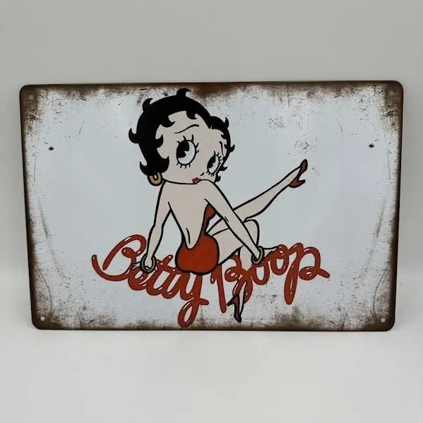 可愛らしいベティ・ブープが描かれたレトロなブリキ看板です。