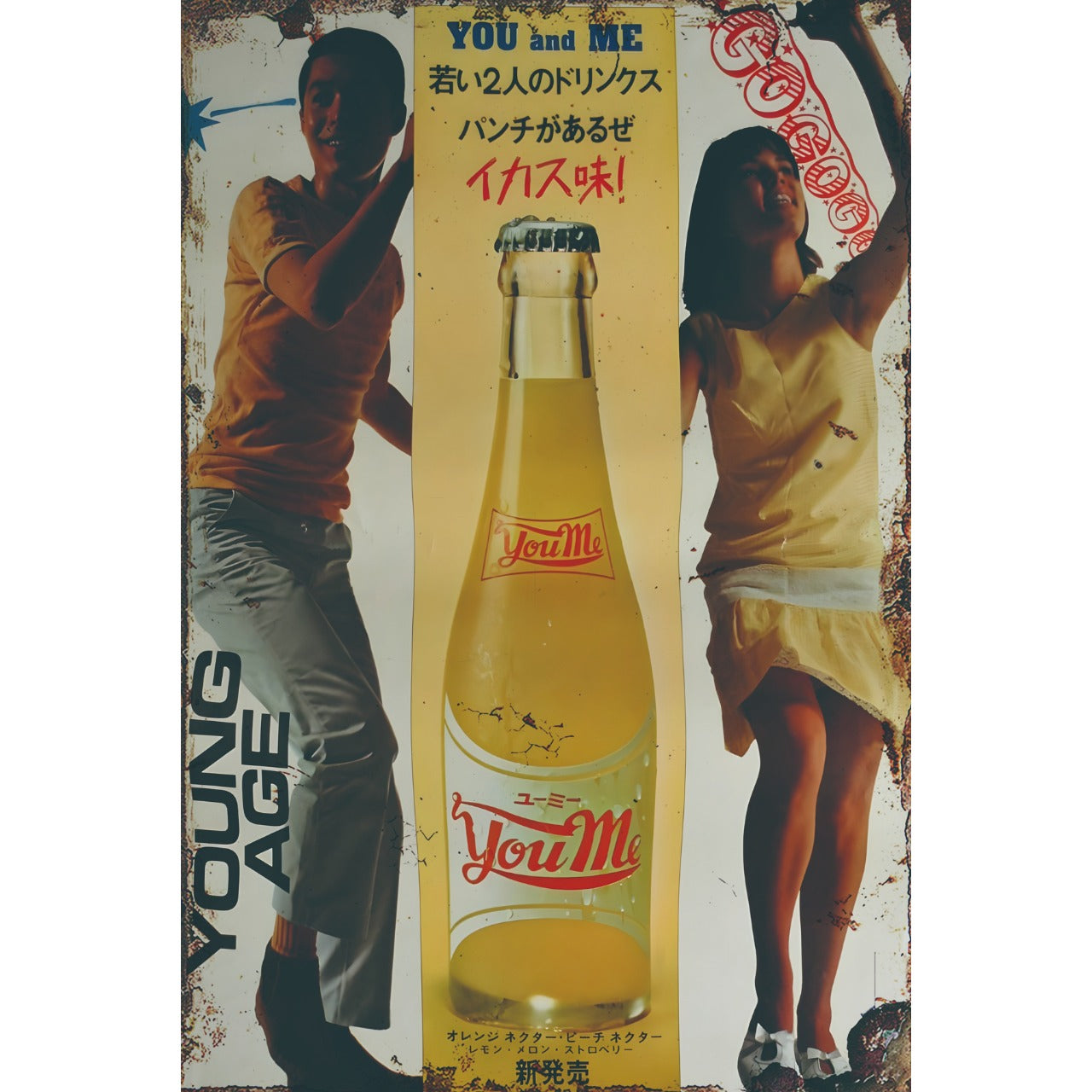 昭和レトロ感たっぷりの「YouMe」ドリンク広告デザインのブリキ看板です。