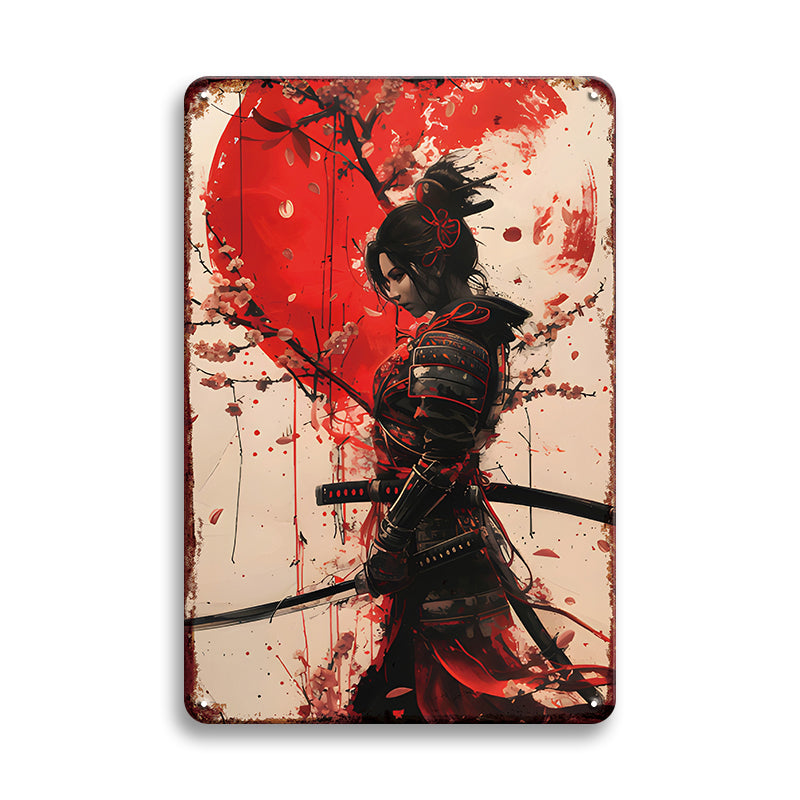 侍 サムライ 和風アート ブリキ看板 日本刀 桜 武士道
