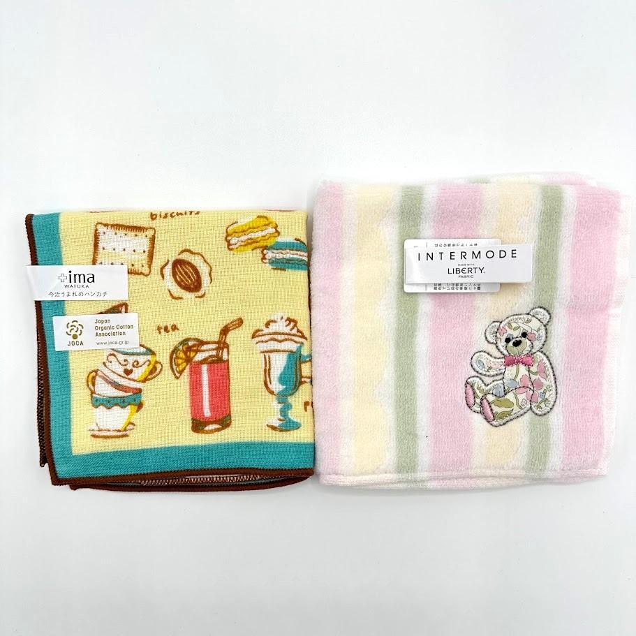 可愛いハンカチ 2枚セットです。 ポケットやかばんに入れやすいサラッとしたハンカチです。 【サイズ】今治ハンカチ 約24×24cm      クマ柄 約25.5×25.5cm 【素材】綿100%