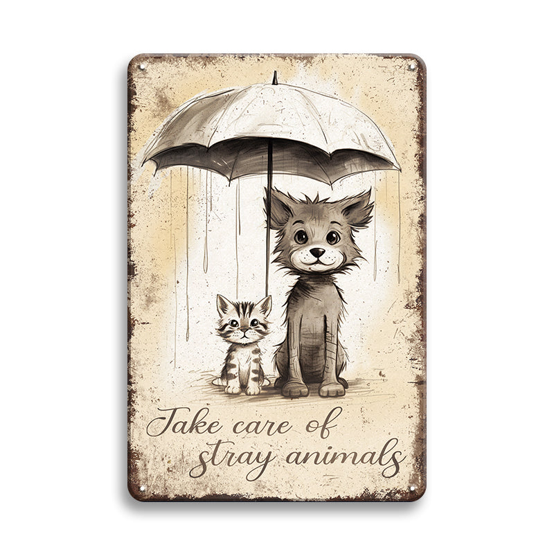 「Take care of stray animals」のメッセージ入りで、保護動物やペットを大切にする思いが伝わります。