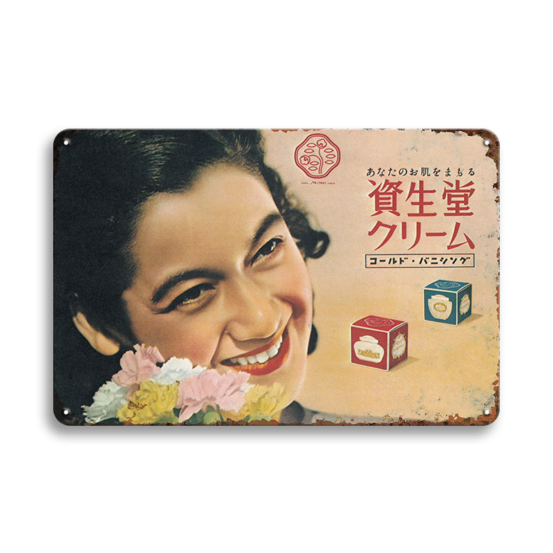 資生堂のクラシックなクリーム広告をデザインしたブリキ看板です。