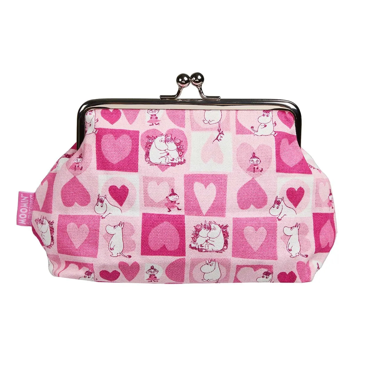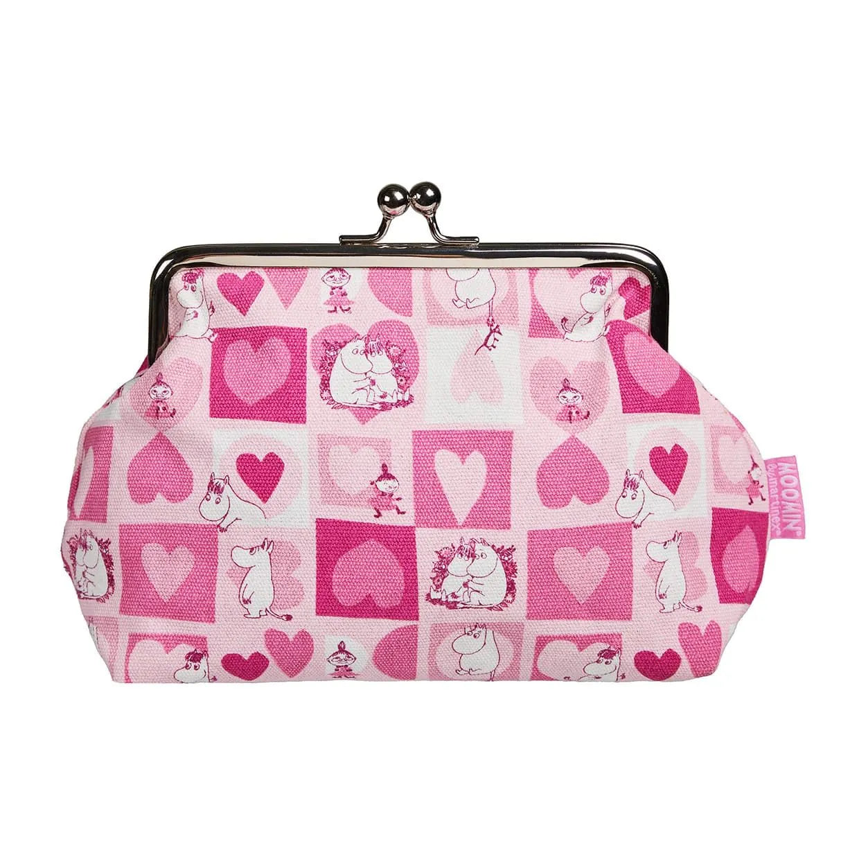 バレンタイン限定コレクションのひとつ、優しいピンク色の Emma ポーチ Rakastettu(ラカステットゥ/愛されて)。背景にはハートやチェック柄、そして寄り添うムーミンとフローレンが描かれた、愛らしいデザインです。 ムーミンとフローレンが仲睦まじく座り、穏やかな幸福感が漂うシーン。ピンクの小花と共に描かれたピリッと元気なリトルミィも、楽しげな雰囲気を添えています。 丈夫なキャンバス生地を使用し、使いやすい金具付きの留め具で開閉が簡単。広めの底マチがあるため収納力が高く、メイクポーチや小物入れ、さらにはクラッチバッグのように持ち歩くこともできます。 素材:100% コットンキャンバス サイズ:20 × 15 cm 重量:0.1kg カラー:ピンク 仕様:メタルロック付き開閉、内側仕切りなし、Moomin タグ付き お手入れ:表面拭き取り(洗濯不可)