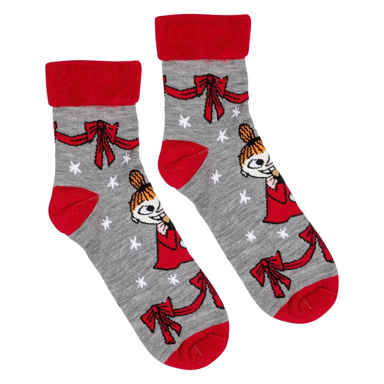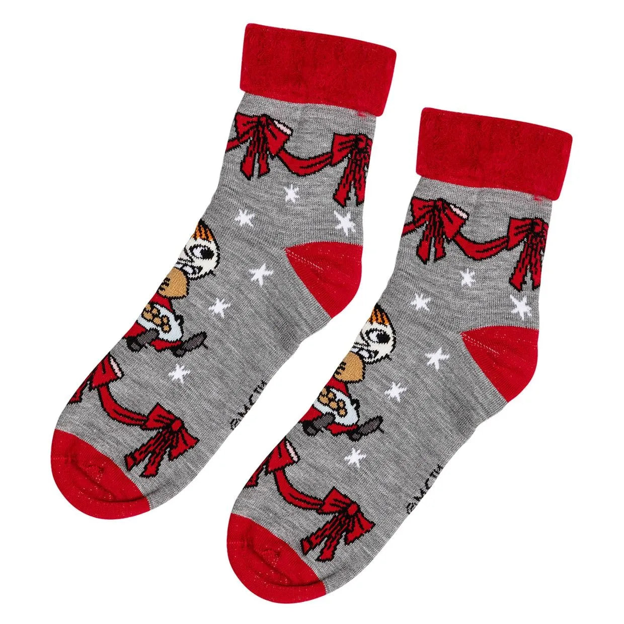 ムーミンの人気キャラクター、リトルミミィがデザインされたグレーの靴下です。