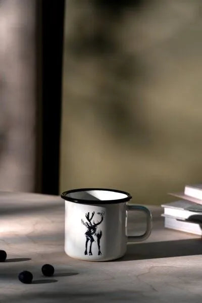 力強く描かれたトナカイ(Poro)のイラストが特徴で、日常使いはもちろん、アウトドアやキャンプ、コテージでのひとときにもぴったり。