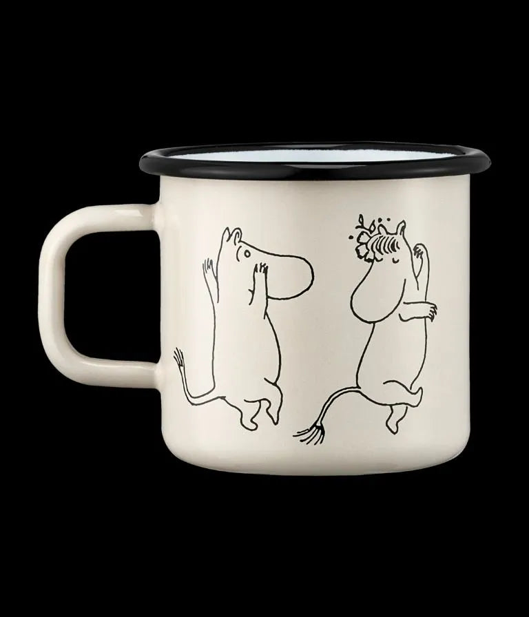 ムーミンとスノークのおじょうさんが仲良く踊っているかわいらしいデザインが特徴的で、ホーロー(銅板・エナメルコーティング) で作られています。