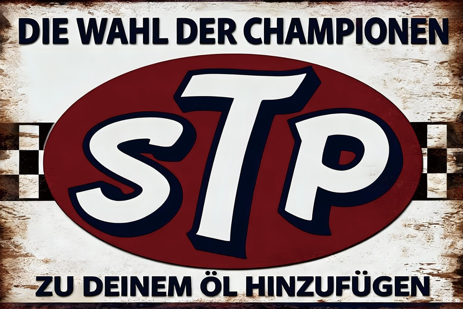 STP(エスティーピー)のクラシックロゴがデザインされたブリキ看板です。